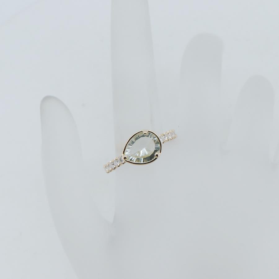 Valletta Ottava Comet Green Amethyst and Diamond Ring, Size 14, 0.30ct, 18K Yellow Gold (K18YG), Pawn Shop Listing
