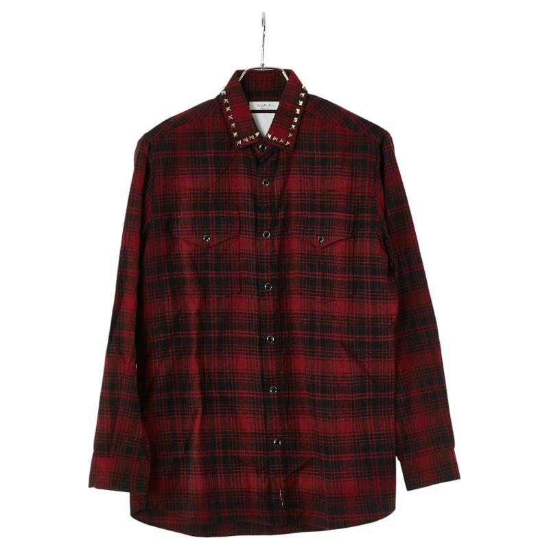Pre-owned Valentino Check Rockstud Flannel Shirt, Size 39, Red, Black, Cotton, Wool.