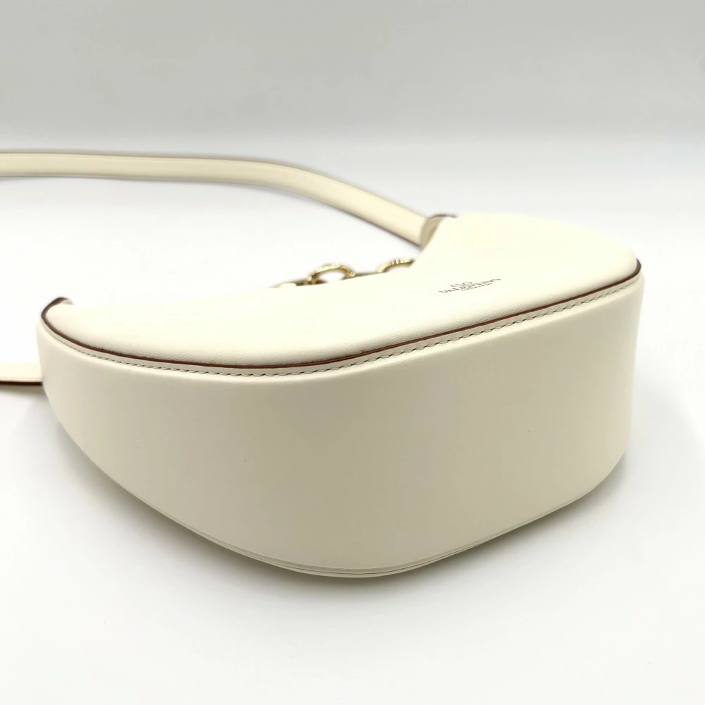 [37% OFF] Valentino Garavani Women's 2-Way V Logo Moon Shoulder Bag, Handbag, Crossbody Hobo Bag, Ivory with Gold Hardware, Excellent Condition [Pre-owned]