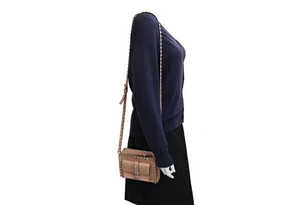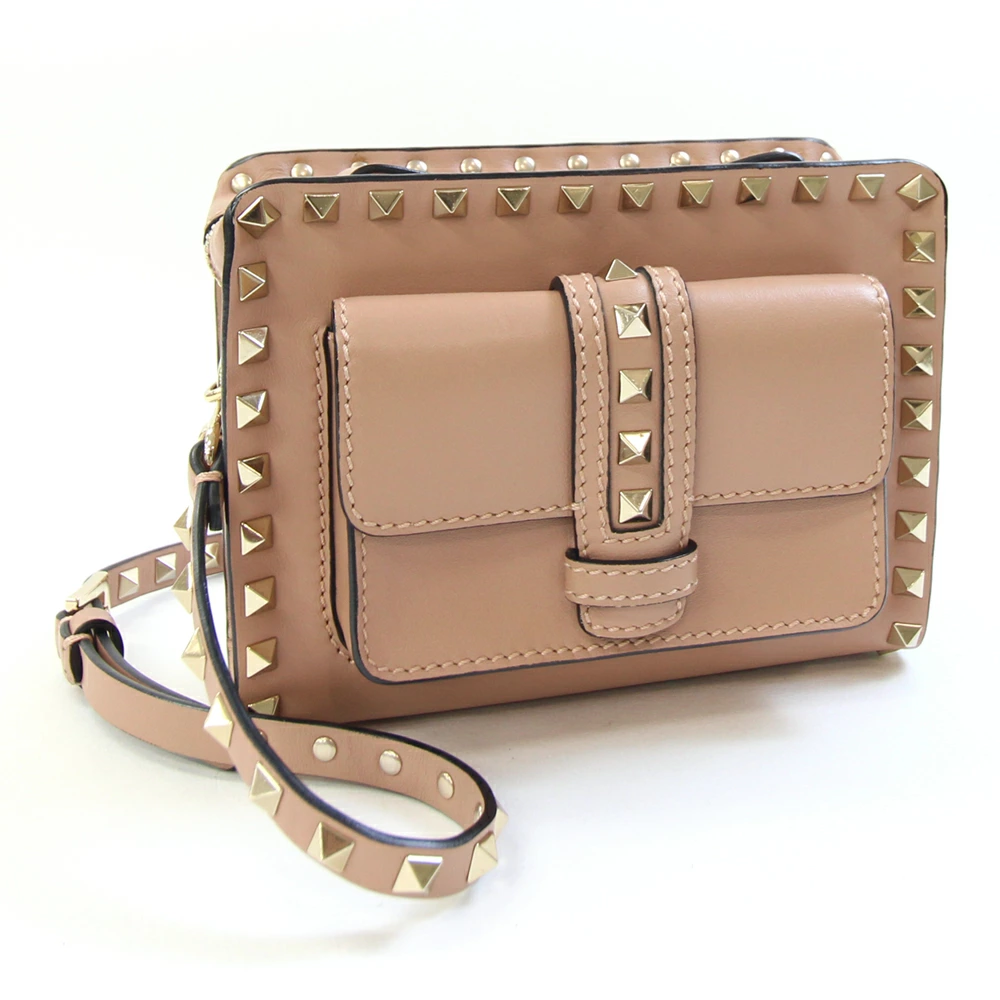 Valentino Garavani Rockstud Shoulder Bag in Pink Beige Leather, Pre-Owned, Crossbody Mini Bag, Women's, VALENTINO GARAVANI