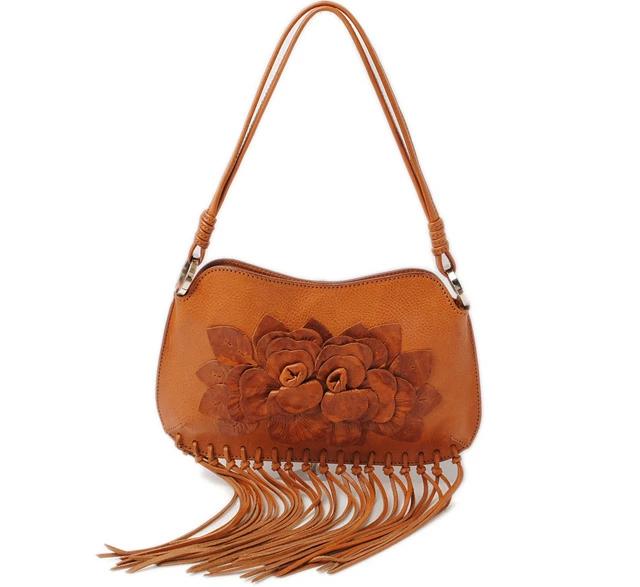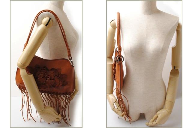ヴァレンティノ VALENTINOより、ナチュラルレザーのショルダーバッグです。ナチュラルレザーで施された、センターのフラワー柄が、ハンドメイドできめ細かく作りこまれており、とってもおしゃれです。フリンジがアクセントとなり、肩のラインが綺麗に見えるデザインで、普段使いのにも。