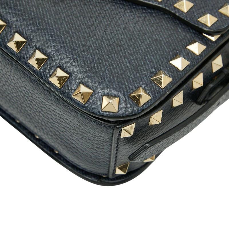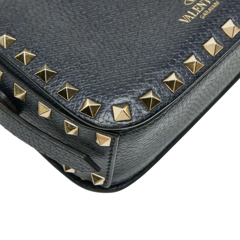 - ヴァレンティノ ショルダーバッグ ネイビー ゴールド レザー レディース VALENTINO 【中古】