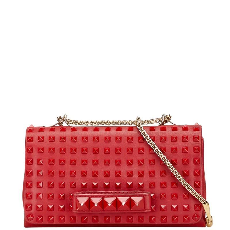 - ヴァレンティノ チェーン ショルダーバッグ レッド レザー レディース VALENTINO 【中古】