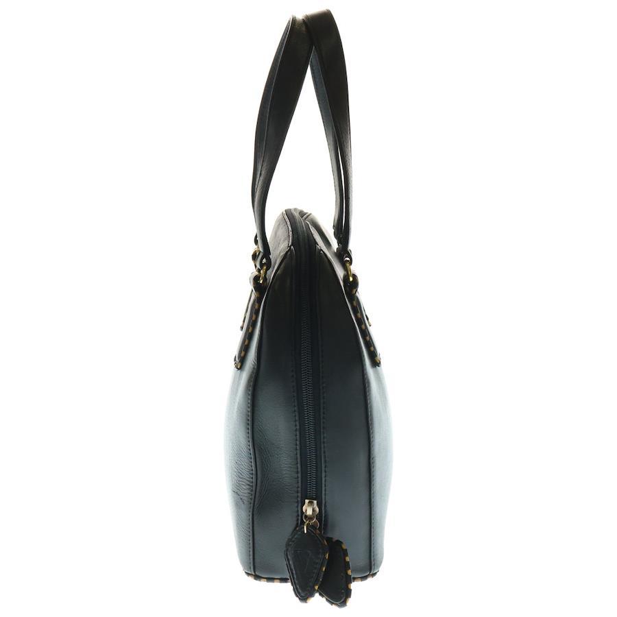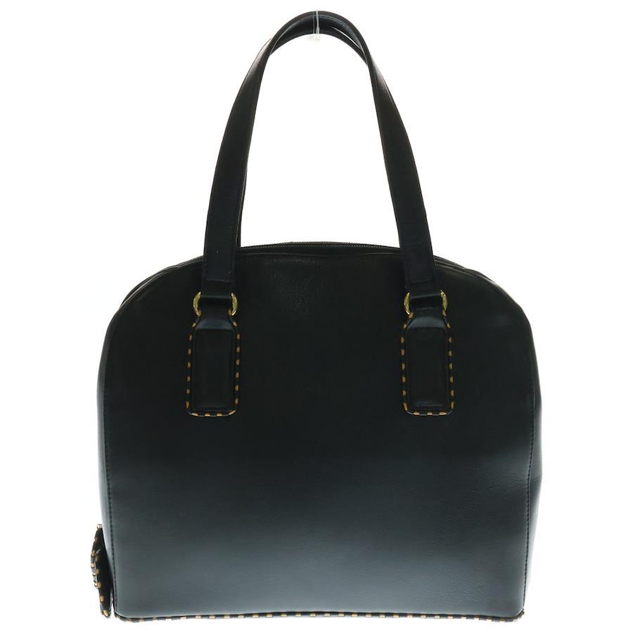 [モデル]ステッチ ハンドバッグ 肩掛けバッグ ブラック レザー
