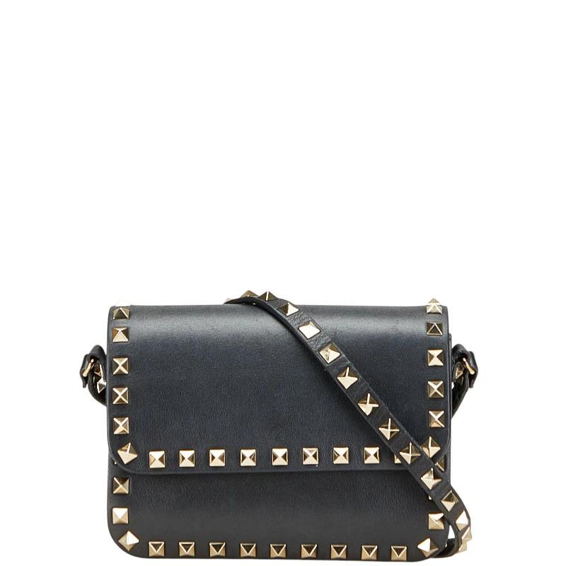 Valentino Rockstud Shoulder Bag in Black Leather, Women's, Pre-owned