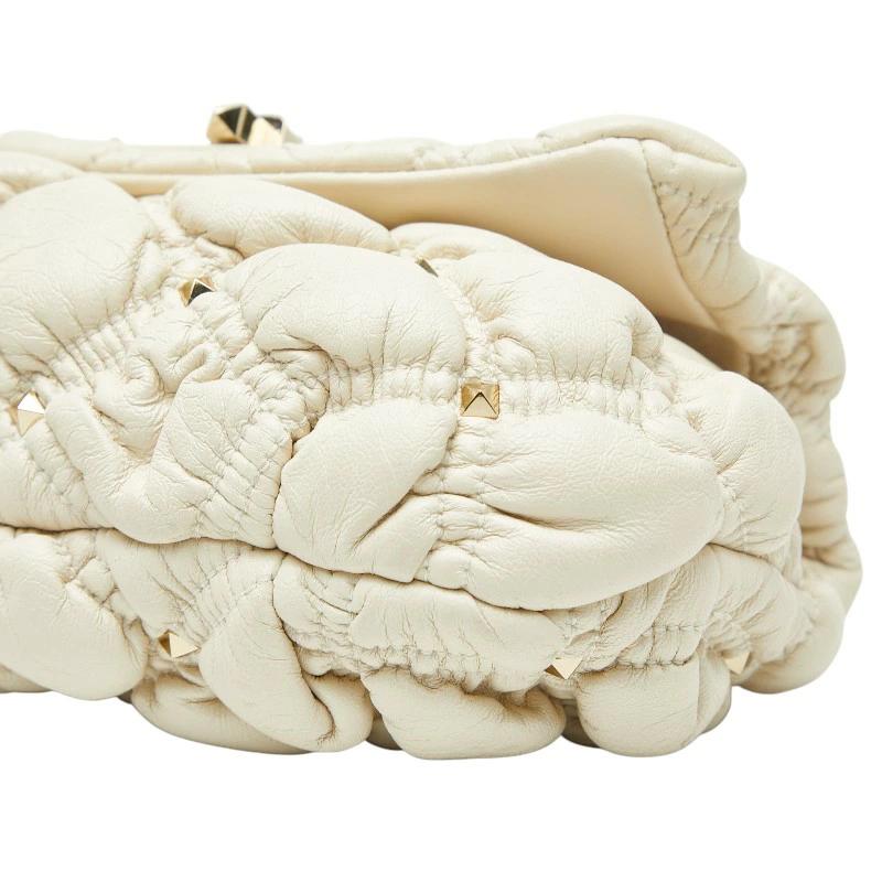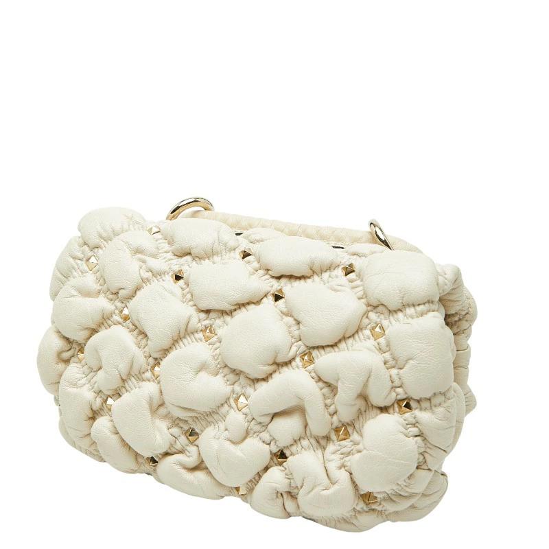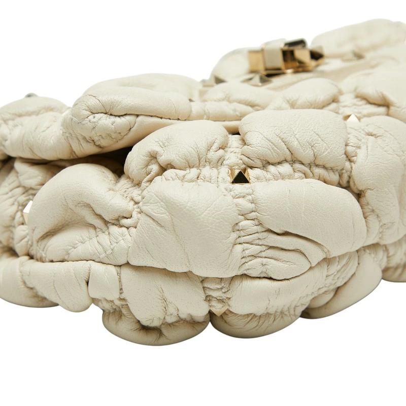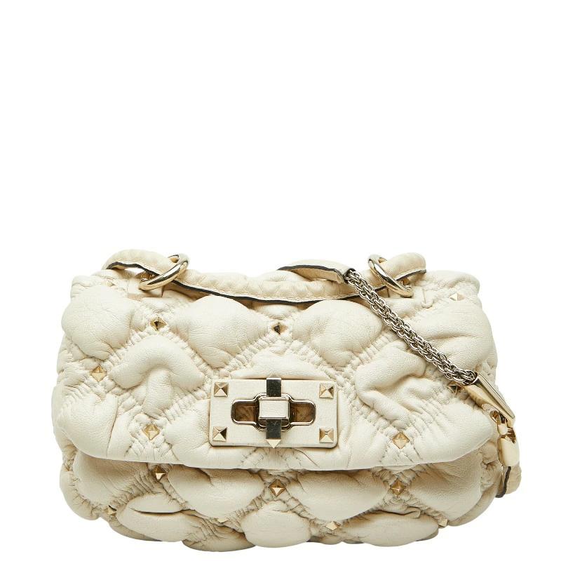 - ヴァレンティノ ロックスタッズ スパイク 斜め掛け ミニショルダーバッグ アイボリー ホワイト レザー レディース VALENTINO 【中古】
