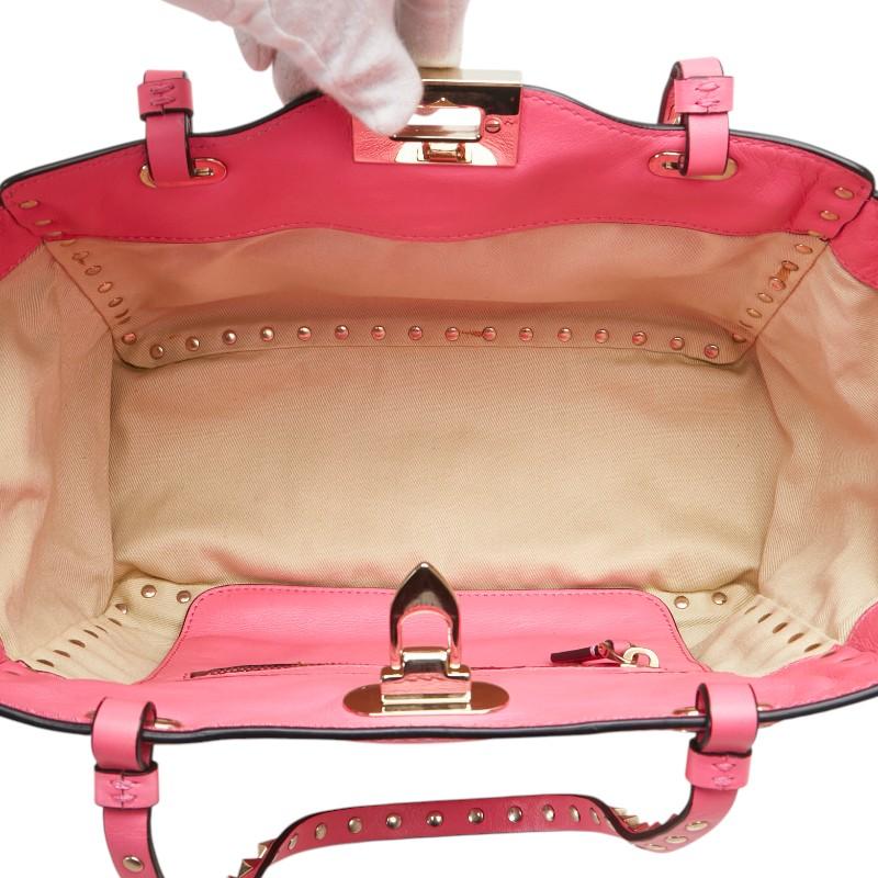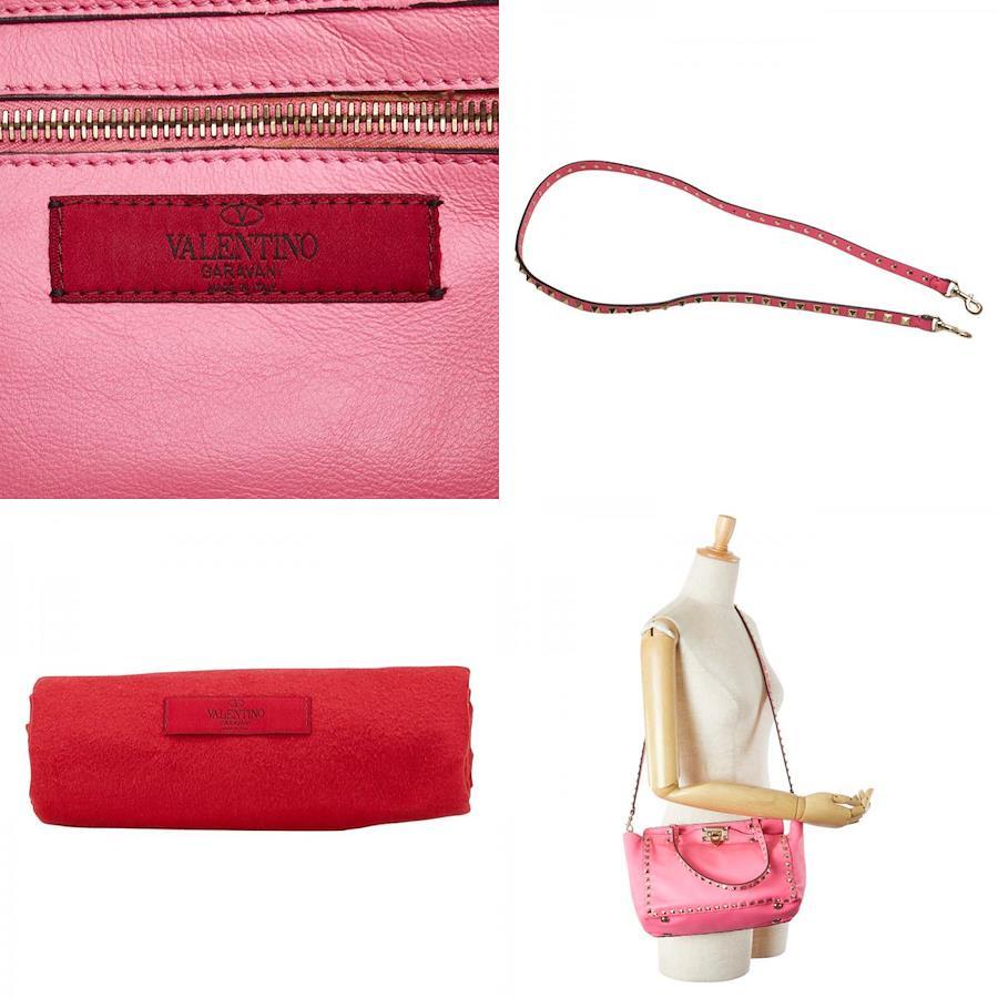■商品情報[管理番号]1-0225534[ブランド]ヴァレンティノ(VALENTINO)[対象]レディース[カラー] ピンク[シリーズ]ロックスタッズ[素材]レザー[サイズ]W約25.5cmxH約17cmxD約9cmハンドル高さ:約18.5cmショルダー高さ:約46cm開閉式:ロック金具内側:ファスナーポケットx1[付属品]保存袋(本体),ショルダーストラップ[状態・コンディション]ランク AB全体コンディション詳細:外側⇒僅かにキズ・薄汚れハンドル⇒若干のコバはがれショルダー⇒ビス取れ金具⇒くすみ内側⇒汚れ