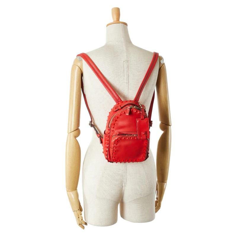 - ヴァレンティノ リュック バックパック レッド レザー レディース VALENTINO 【中古】