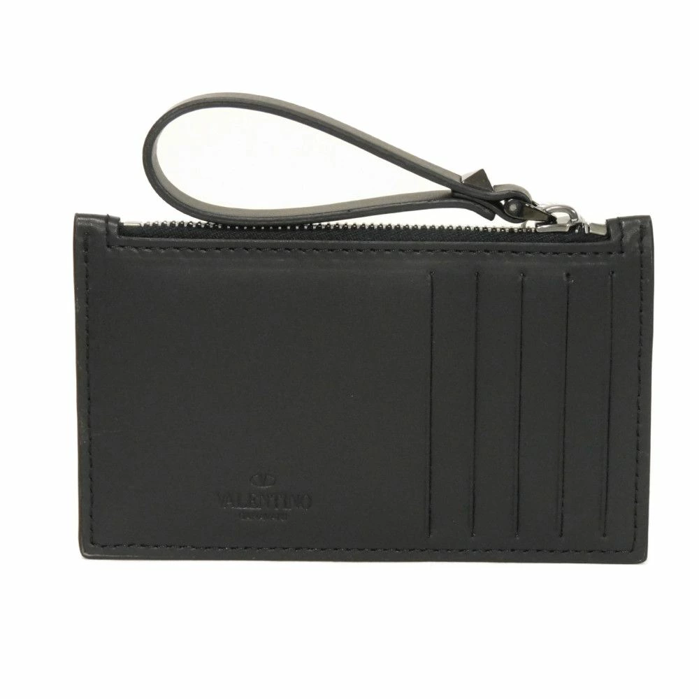 Valentino VLTN Logo Embossed Zip Card Holder Coin Case, Calfskin Leather, RFID, Unused, One Stud, Black, 1Y0P0540BHY, Men's Wallet, Elegant, Luxury, Sophisticated, Brand Name [Pre-owned]