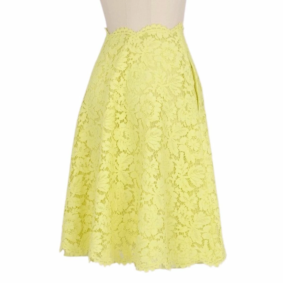 Valentino Skirt Flared Skirt Lace Midi Length Made in Italy Bottoms Women's 40 (M equivalent) Yellow [Used]