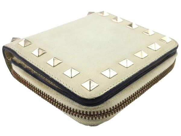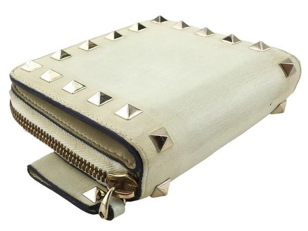 [24% OFF Coupon] Valentino Rockstud Long Wallet, Ivory, Black, and Silver, Men's, Pre-owned