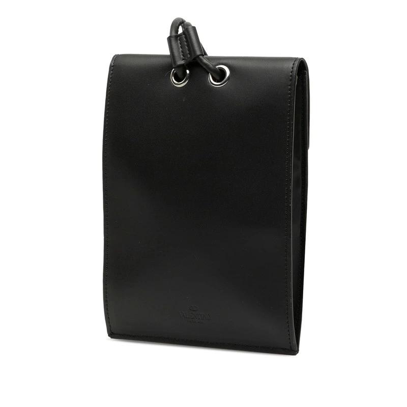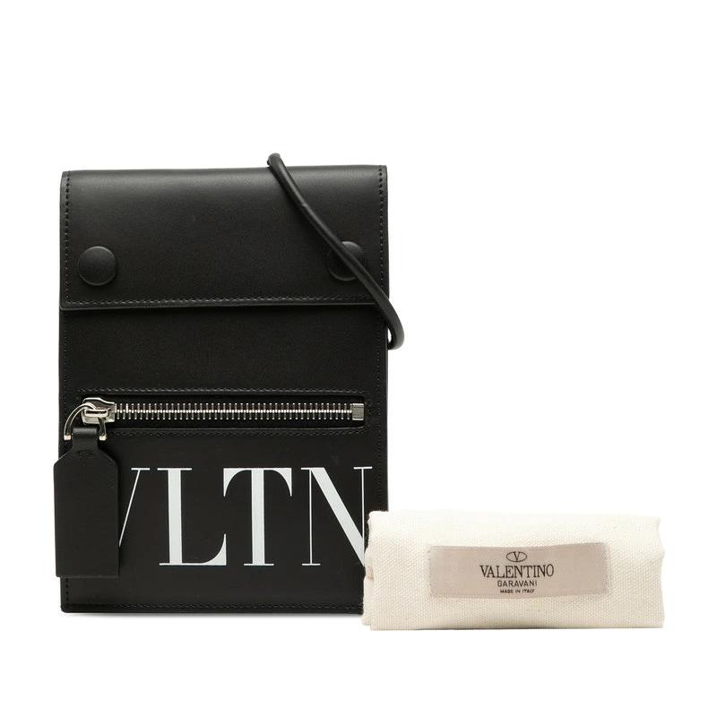 - ヴァレンティノ VLTN ショルダーバッグ サコッシュ ブラック ホワイト レザー レディース VALENTINO 【中古】