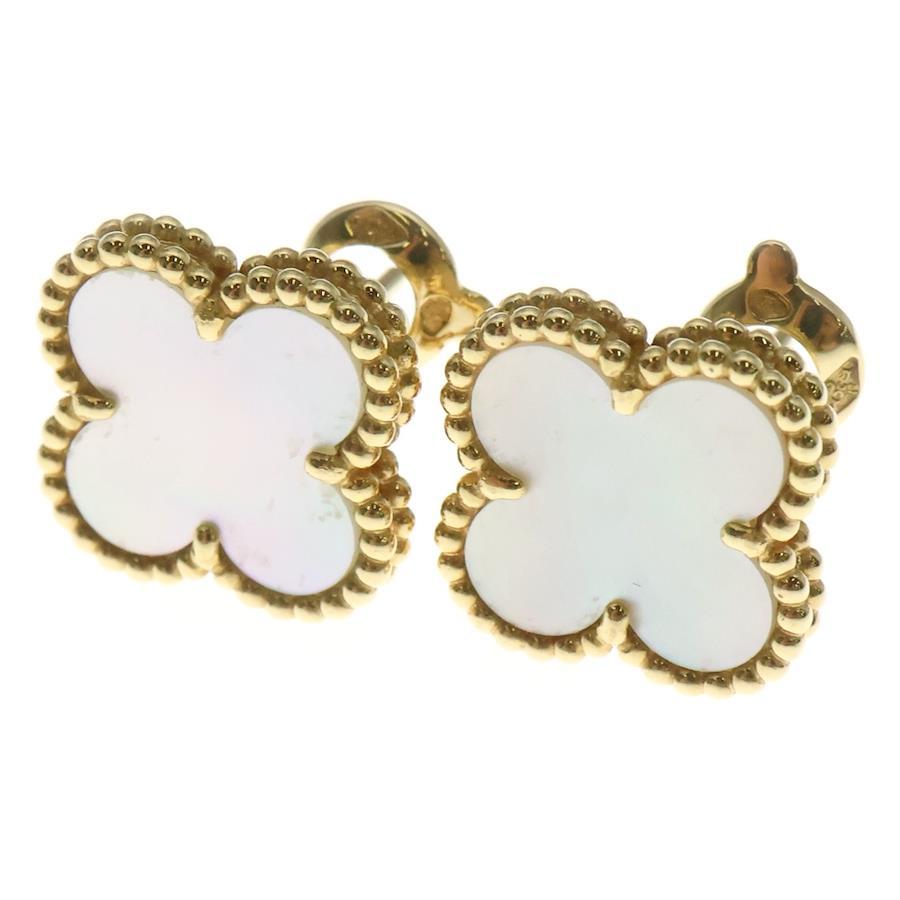 [モデル]ヴィンテージアルハンブラ マザーオブパール イヤリング ピアス Au750YG イエローゴールド レディース VCARA44100