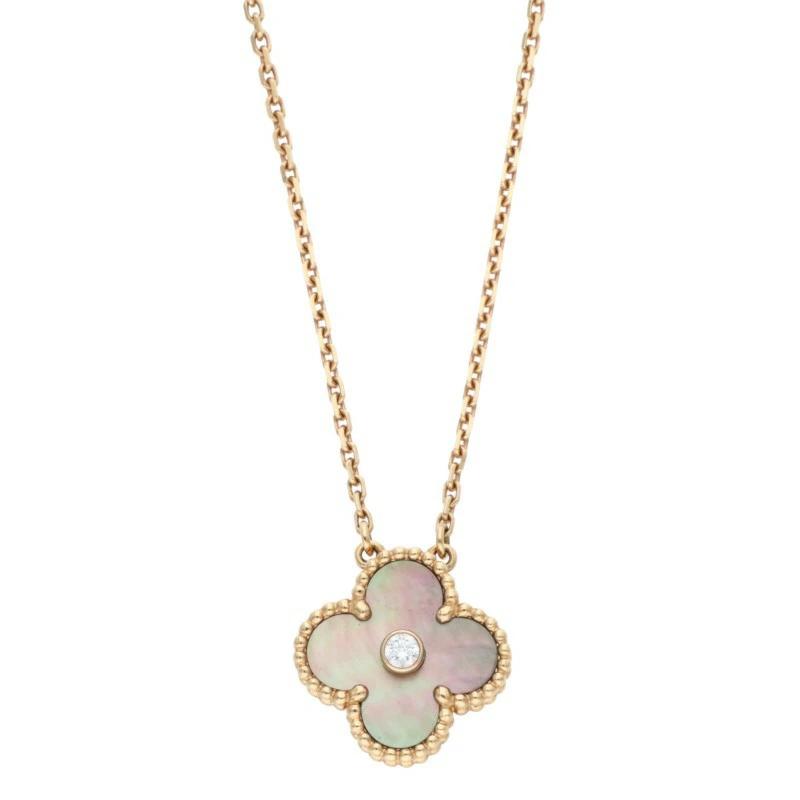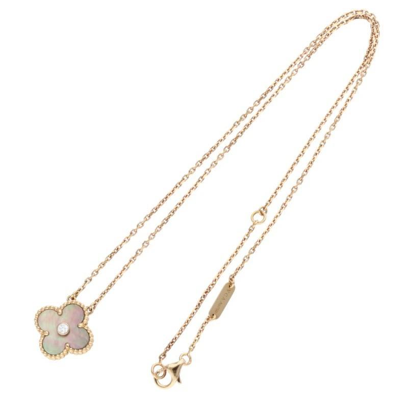 Van Cleef & Arpels 2014 Vintage Alhambra 18K White Shell Holiday Collection Necklace (Pink Gold and Gray, 6.24g) [022152] [GZ14] [Accessories] [Pre-owned] bb212#rinkan*B