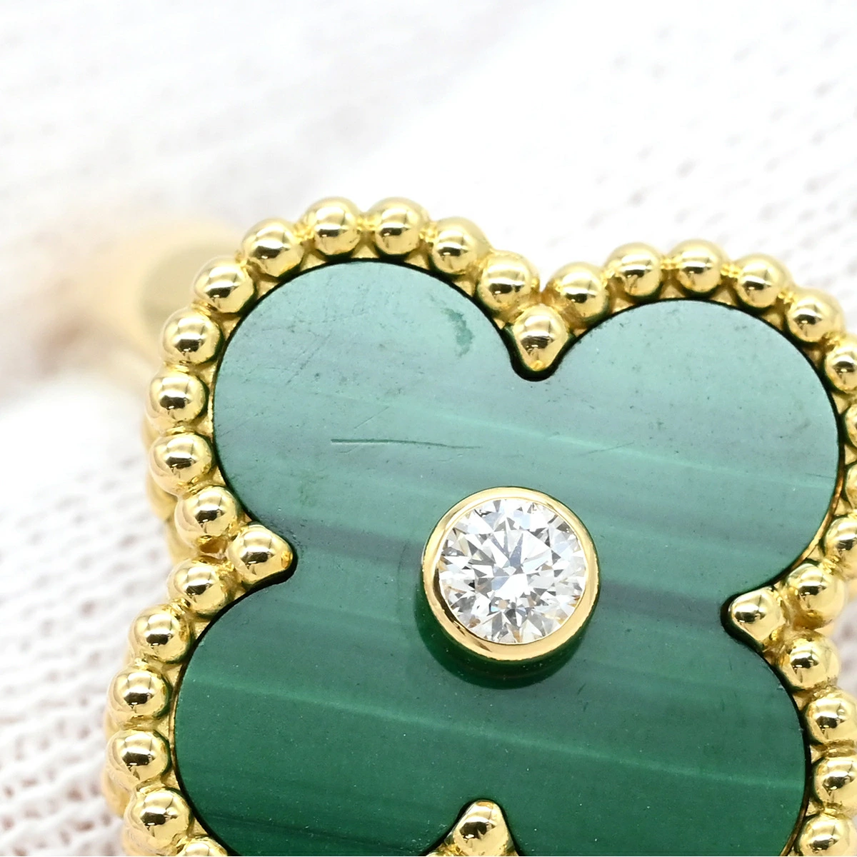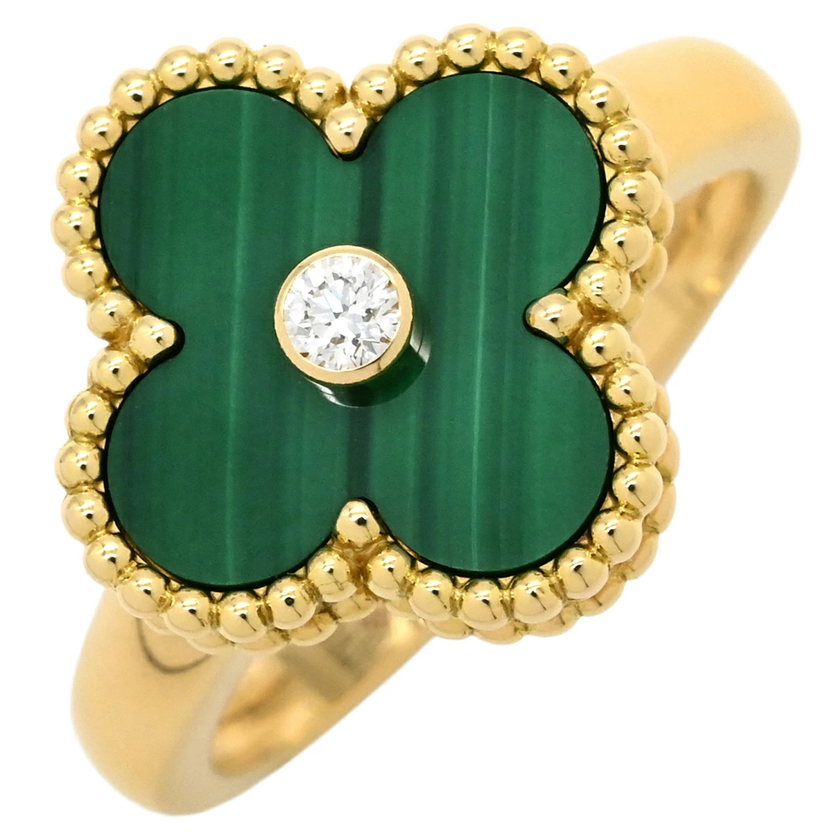ヴァンクリーフアーペル Van Cleef & Arpels リング 指輪 ヴィンテージ アルハンブラ アルハンブラ K18YG ダイヤモンド マラカイト グリーンXイエローゴールド Au750 18金 ダイヤ1P VCARO3QM55 14.5号 #55(JP15) レディース定番 人気 美品 【中古】