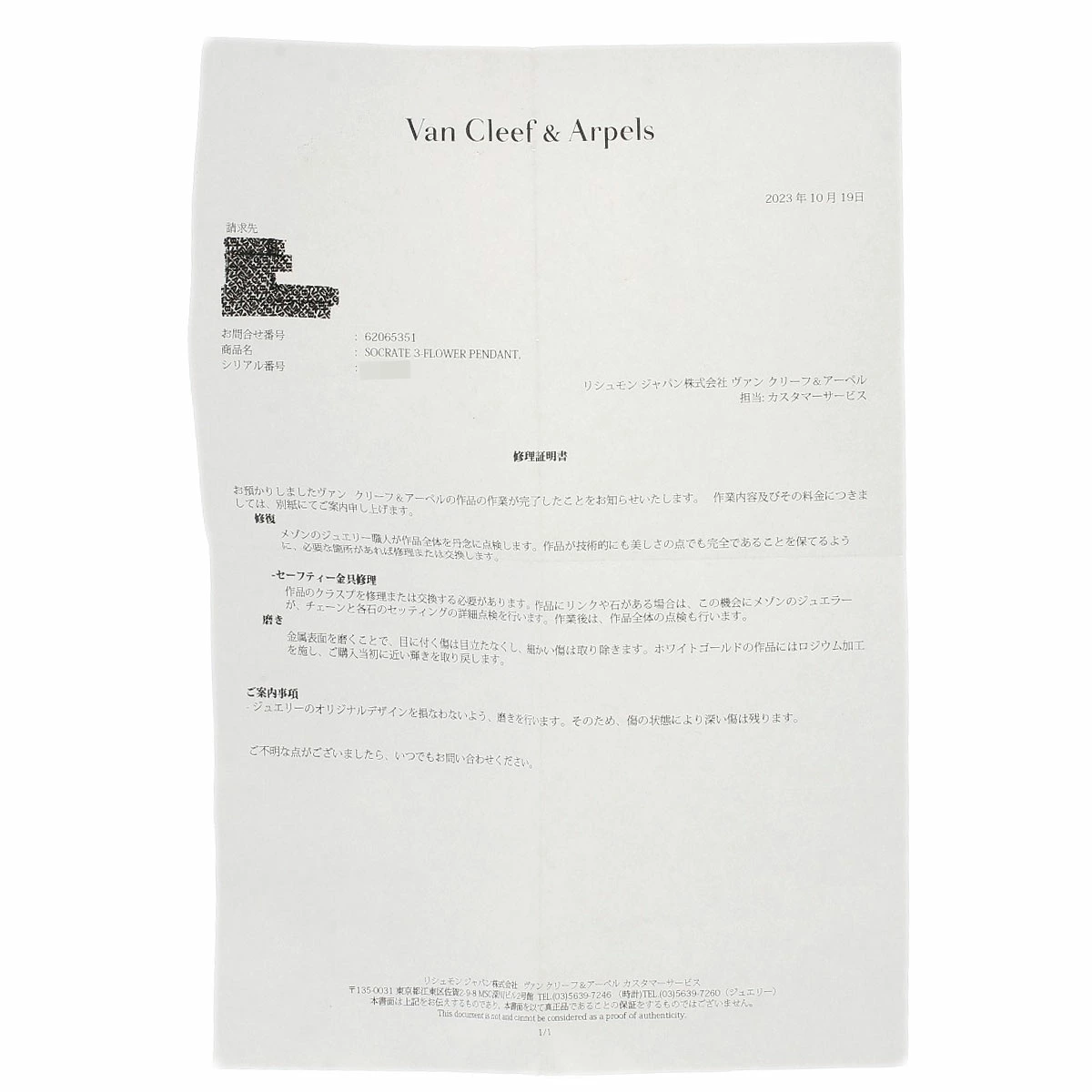 | 付属品 | 箱・ヴァンクリーフ修理証明書 |
