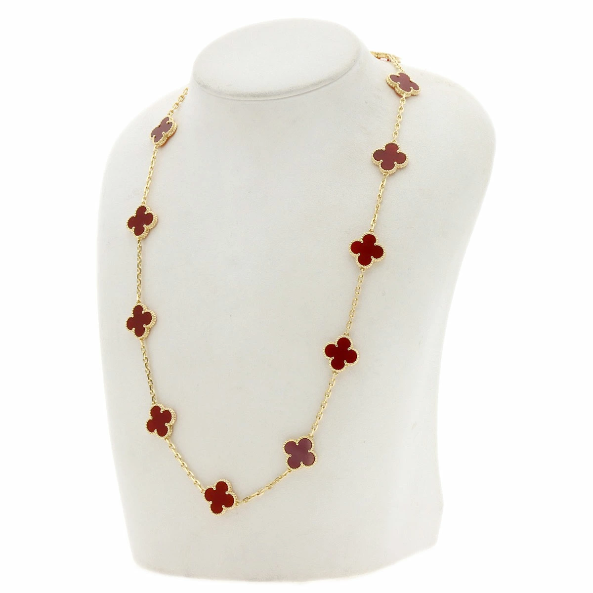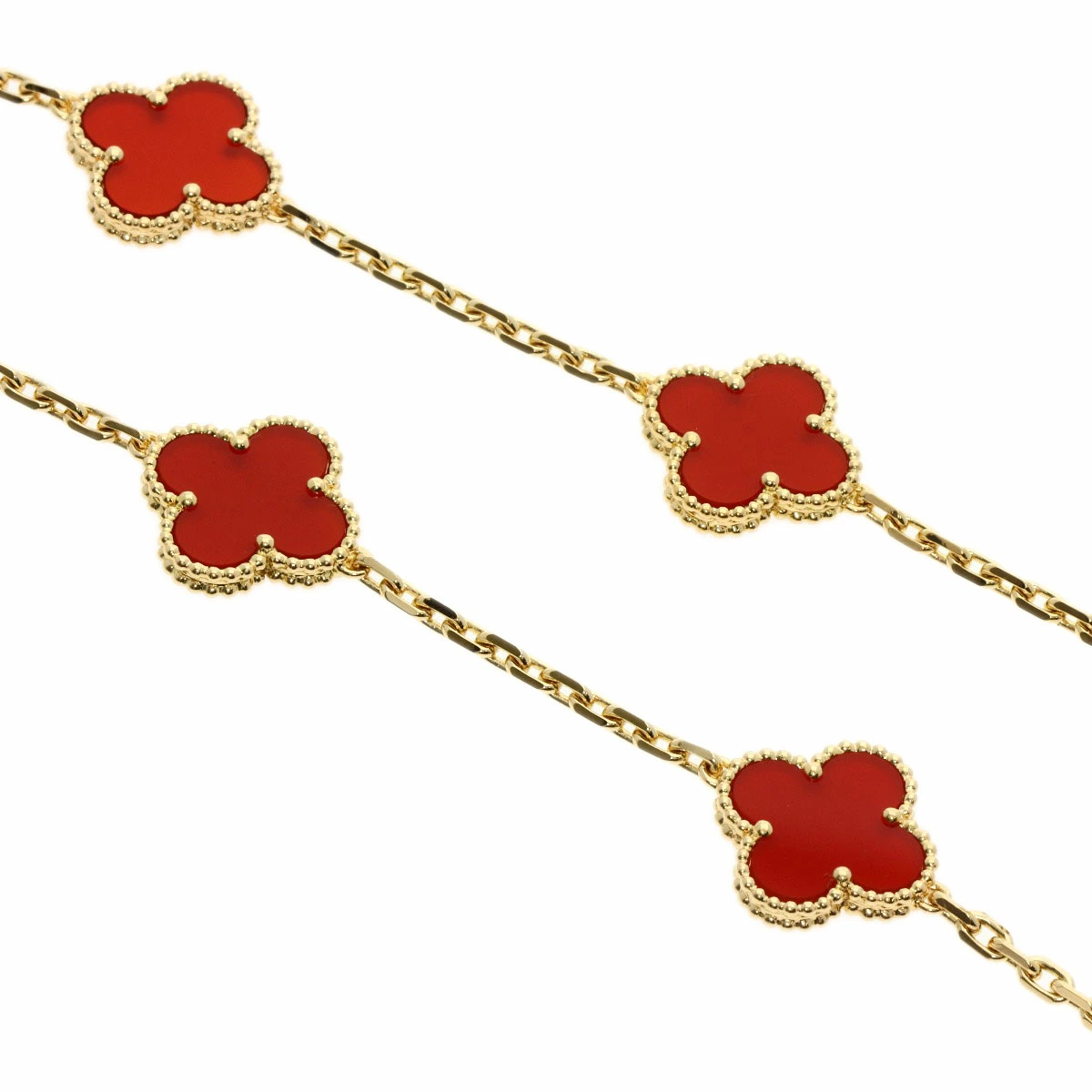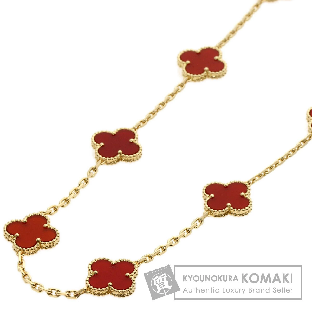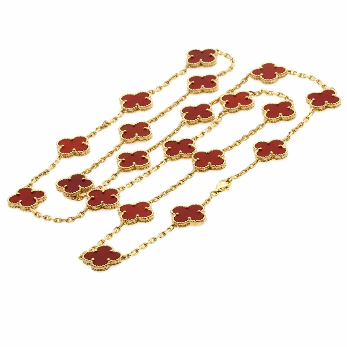 Pre-owned Van Cleef & Arpels Vintage Alhambra Carnelian Necklace in 18K Yellow Gold for Women.