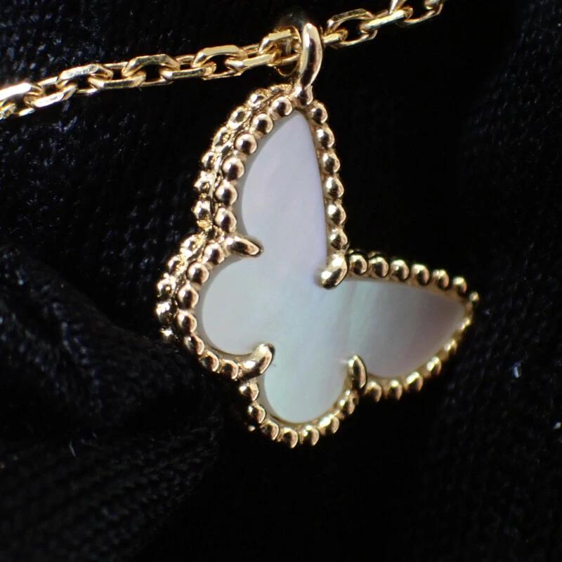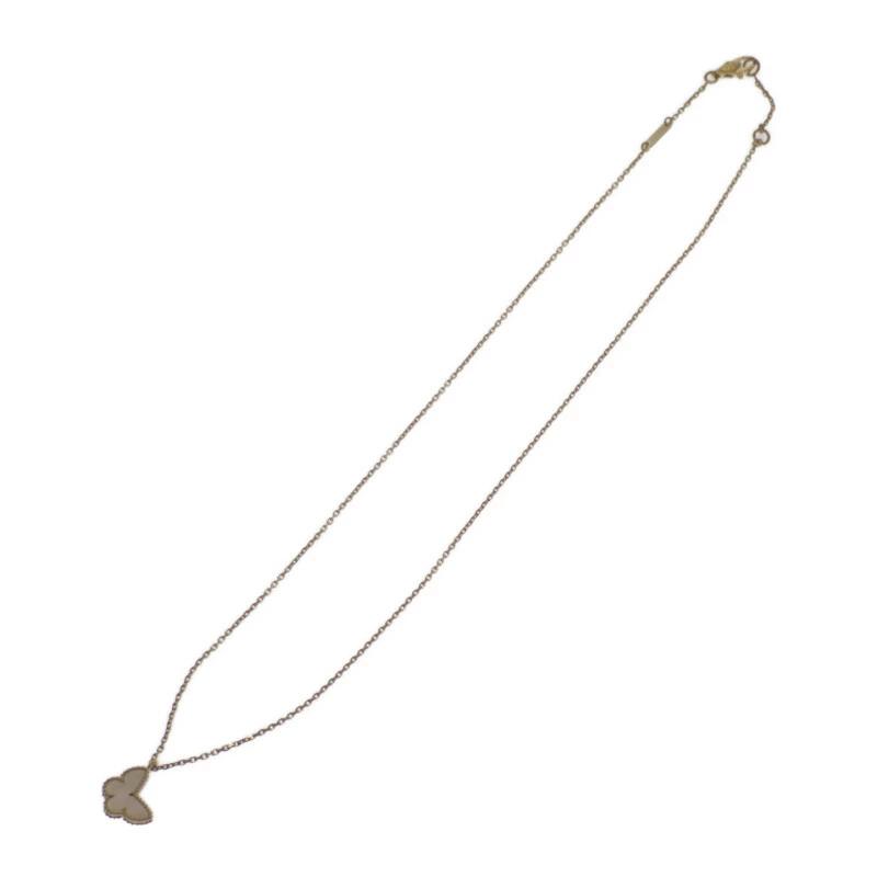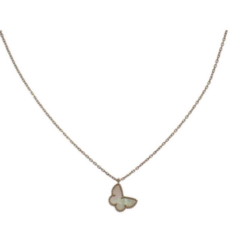 K18イエローゴールドの温もりある輝きに、マザーオブパールの柔らかな艶が調和し、可憐で上品な印象を演出。蝶をモチーフにしたデザインは、「幸福」や「変化」の象徴としても人気で、日常から特別な日まで胸元を華やかに彩ります。