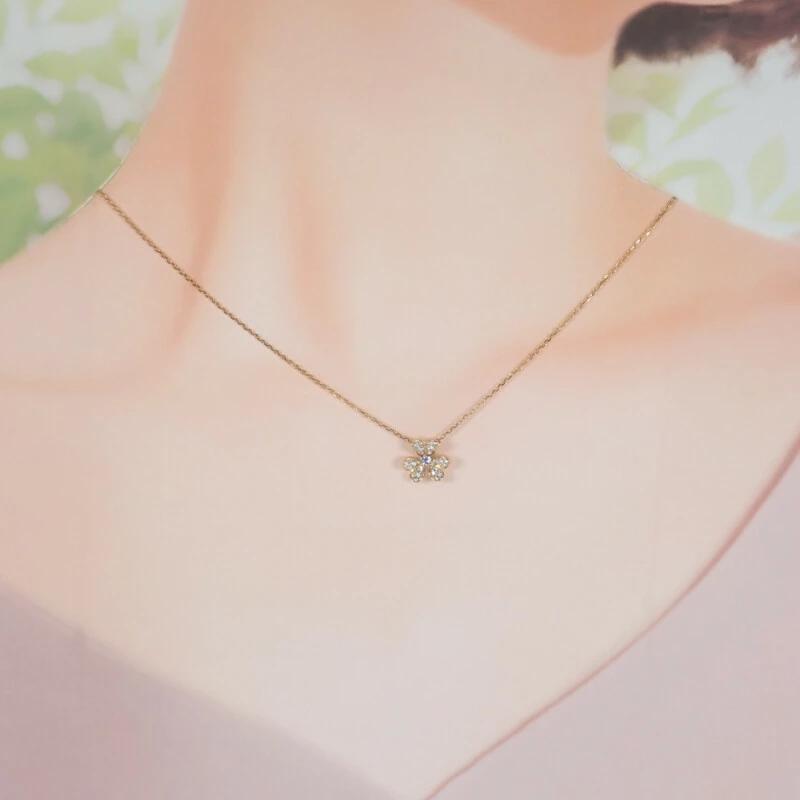 立体的なハート形の花びらに、まばゆいダイヤモンドがあしらわれた人気コレクション「フリヴォル」のミニモデルネックレス。