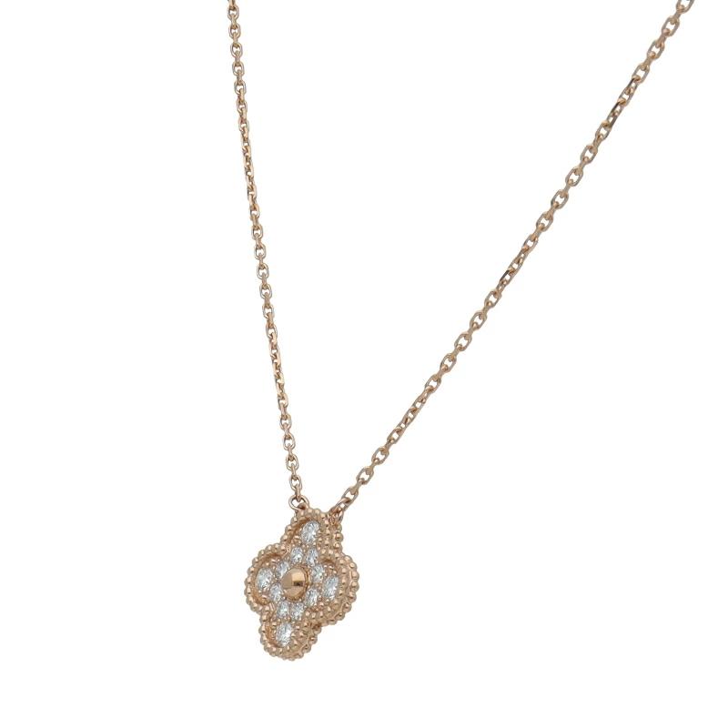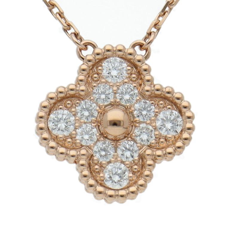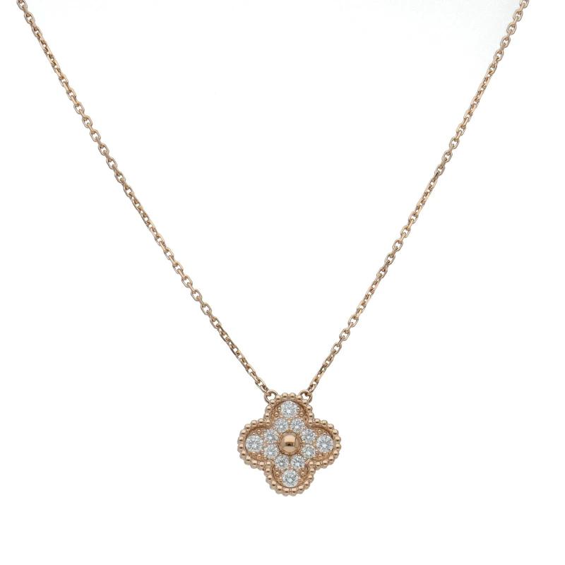 Pre-owned Van Cleef & Arpels Vintage Alhambra Diamond Necklace VCARP2R300/D: 0.48ct (Head (approx.): H 1.5 x W 1.5 x D 0.2 cm, Chain: approx. 42 cm) 18K Gold, Polished, Excellent Condition