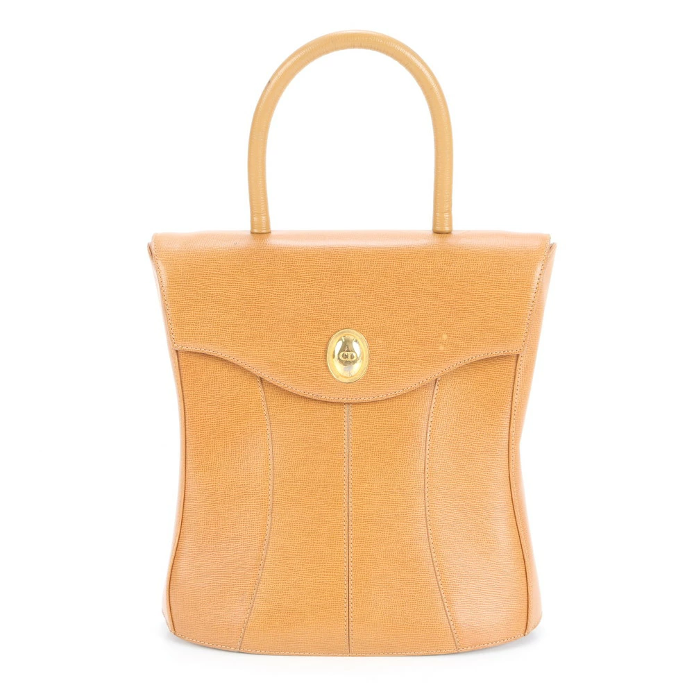 Vintage Christian Dior leather handbag tote, brown with gold hardware, women's, EEE CS24-6