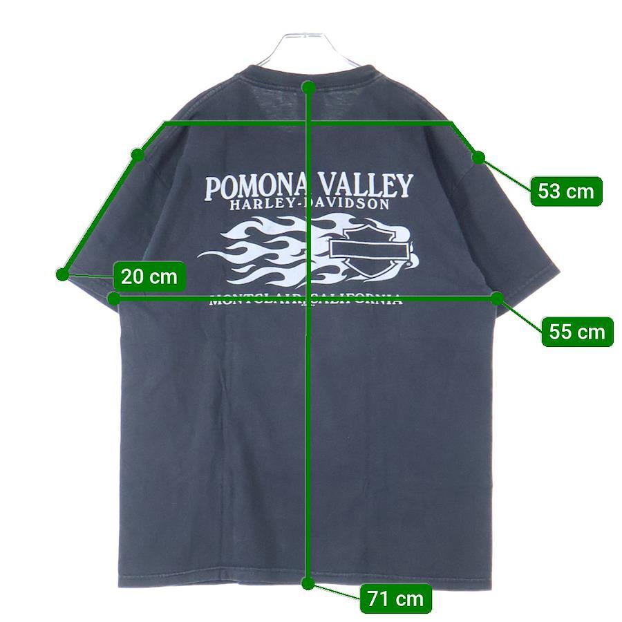 [モデル]00s HARLEY DAVIDSON THE NEW REVOLUTION POMONA VALLEY ハーレーダビッドソン 両面プリント Tシャツ 半袖カットソー ブラック