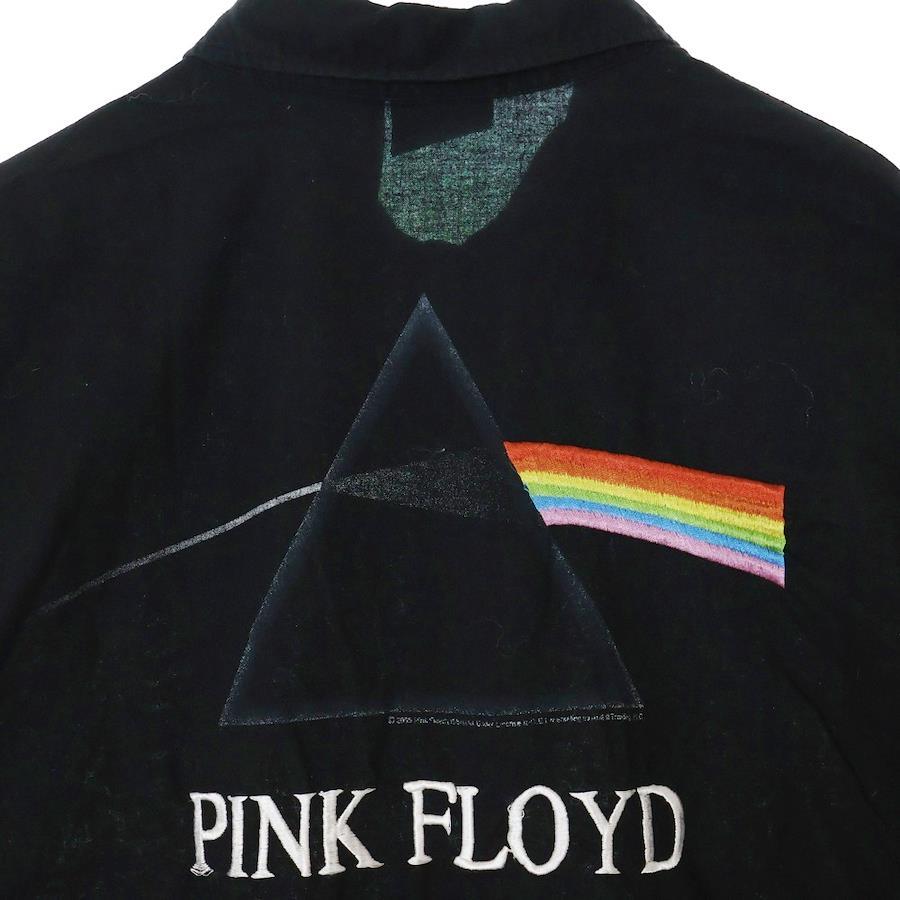 [モデル]00s PINK FLOYD DARK SIDE OF THE MOON EMBROIDERY SHIRT ピンクフロイド ダークサイドオブザムーン エンブロイダリー 刺繍 半袖シャツ ブラック