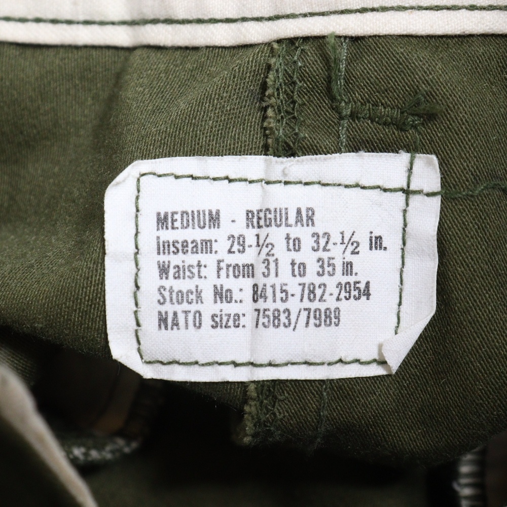 ■商品情報[商品番号]9025I200060[ブランド]VINTAGE(ヴィンテージ)[モデル]70S VINTAGE U.S.ARMY MILITARY M-65 ヴィンテージ ユーエスアーミー ミリタリー フィールド カーゴパンツ カーキ DSA100-74-C-0084[サイズ]平置き採寸 ウエスト:45センチ ワタリ:35センチ 股上:33センチ 股下:74センチ 裾幅:25.5センチ表記サイズ:M■状態・コンディション[状態ランク]ランク B使用感有り全体的に毛羽立ち/色褪せ/ほつれ有り保存臭有り[備考]ビンテージ商品のためダメージがございます。