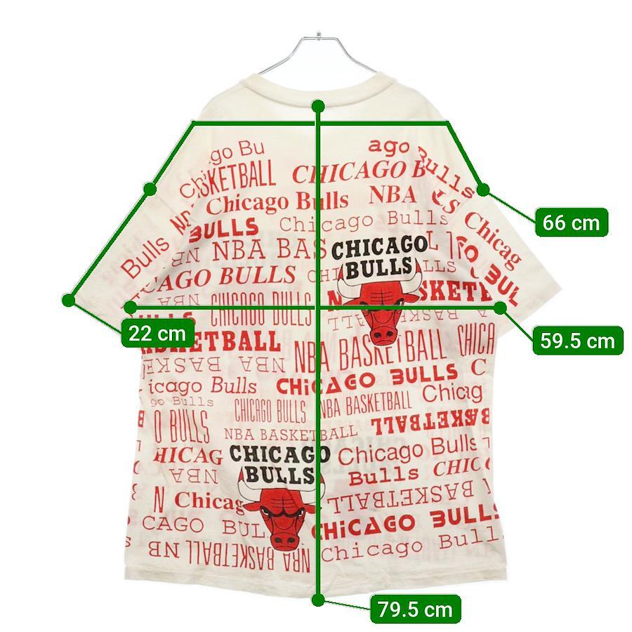 [モデル]80s Chicago Bulls Championタグ 総柄プリント クルーネック 半袖Tシャツ ホワイト