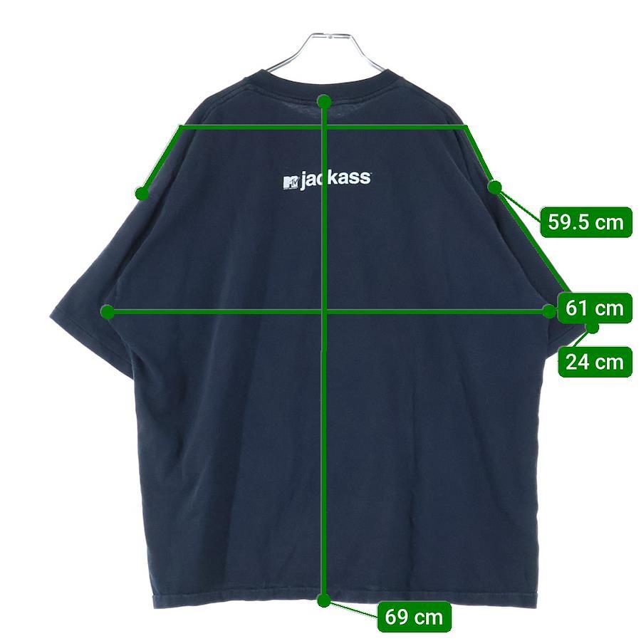 ■商品情報[商品番号]2925I220001[ブランド]VINTAGE(ヴィンテージ)[モデル]90s JACKASS KNOXVILLE PORTRAIT TV TEE ジャッカス ジョニー・ノックスビル Tシャツ 半袖カットソー ブラック[サイズ]着丈:69センチ 身幅:61センチ 肩幅:59.5センチ 袖丈:24センチ表記サイズ:XXL■状態・コンディション[状態ランク]ランク B使用感有りプリントにひび割れ有り全体的に色褪せ/毛羽立ち有り