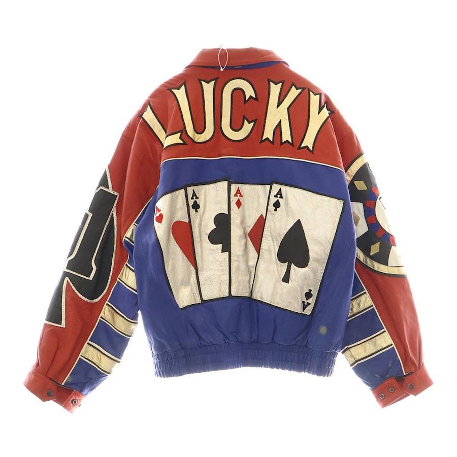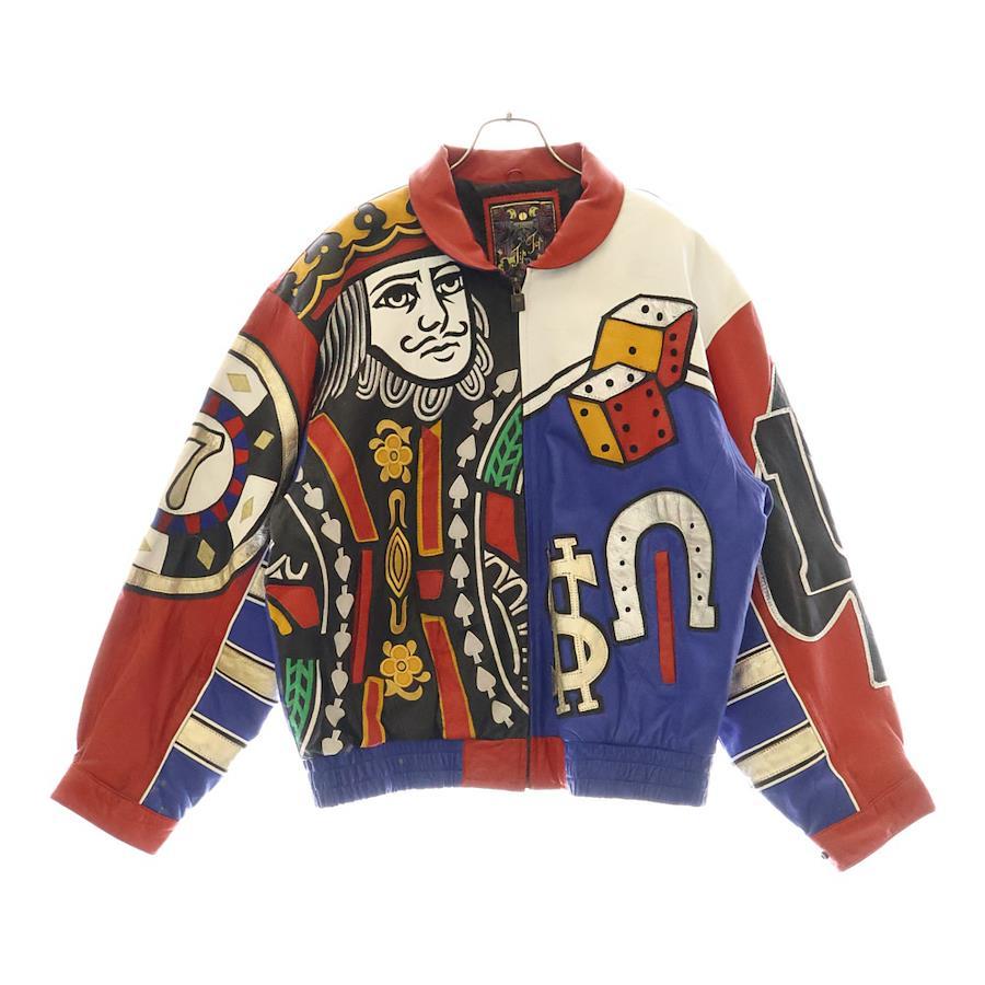 [モデル]90S LUCKY VEGAS カジノ トランプモチーフ レザー ジャケット マルチカラー