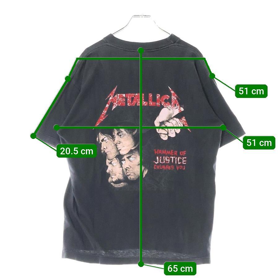 [モデル]90s METALLICA 1988 DAMAGED JUSTICE PUSHEAD TEE メタリカ パスヘッド 両面プリント半袖Tシャツ カットソー ブラック