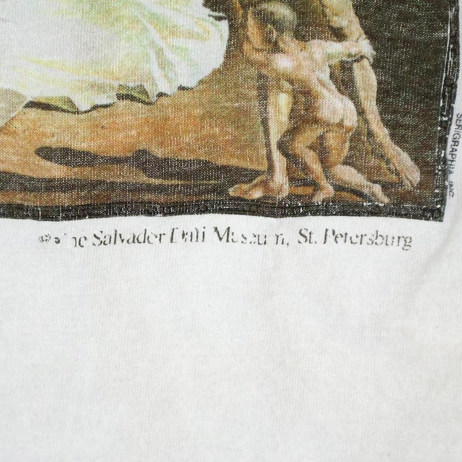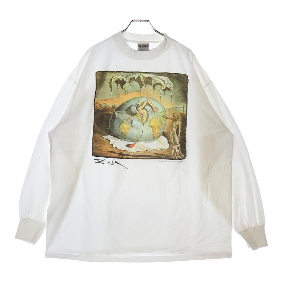 [モデル]90s Salvador Dali 新人類の誕生を見つめる地政学の子供 アートプリント 長袖Tシャツ ホワイト