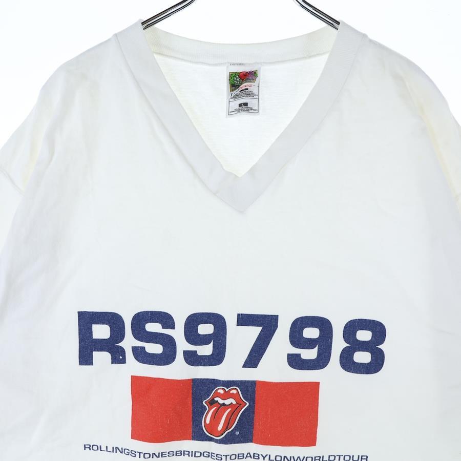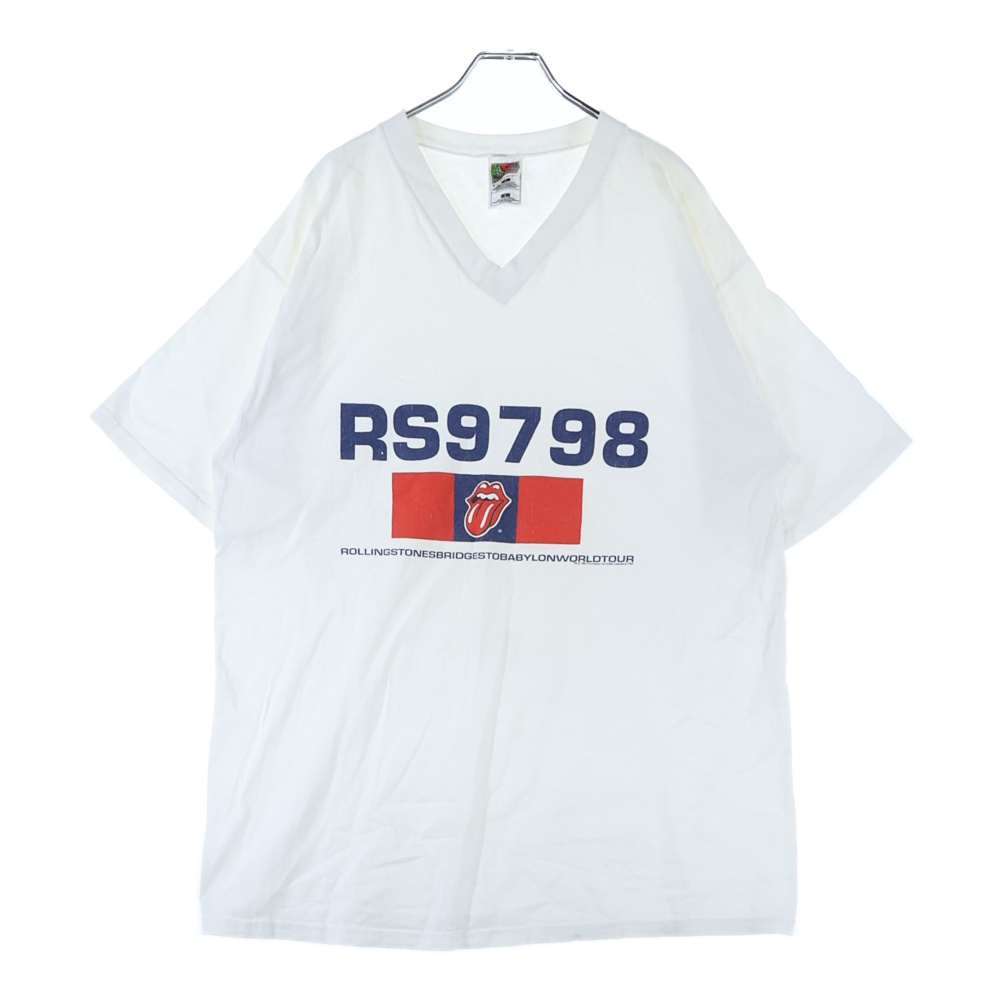 ■商品情報[商品番号]2925I230011[ブランド]VINTAGE(ヴィンテージ)[モデル]90s THE ROLLING STONES BRIDGES TO BABYLON WORLD TOUR 1997 ローリング ストーンズ Vネック 半袖Tシャツ カットソー ホワイト[サイズ]着丈:76センチ 身幅:53センチ 肩幅:53.5センチ 袖丈:24センチ表記サイズ:L■状態・コンディション[状態ランク]ランク B使用感有り後身頃中部にシミ有り