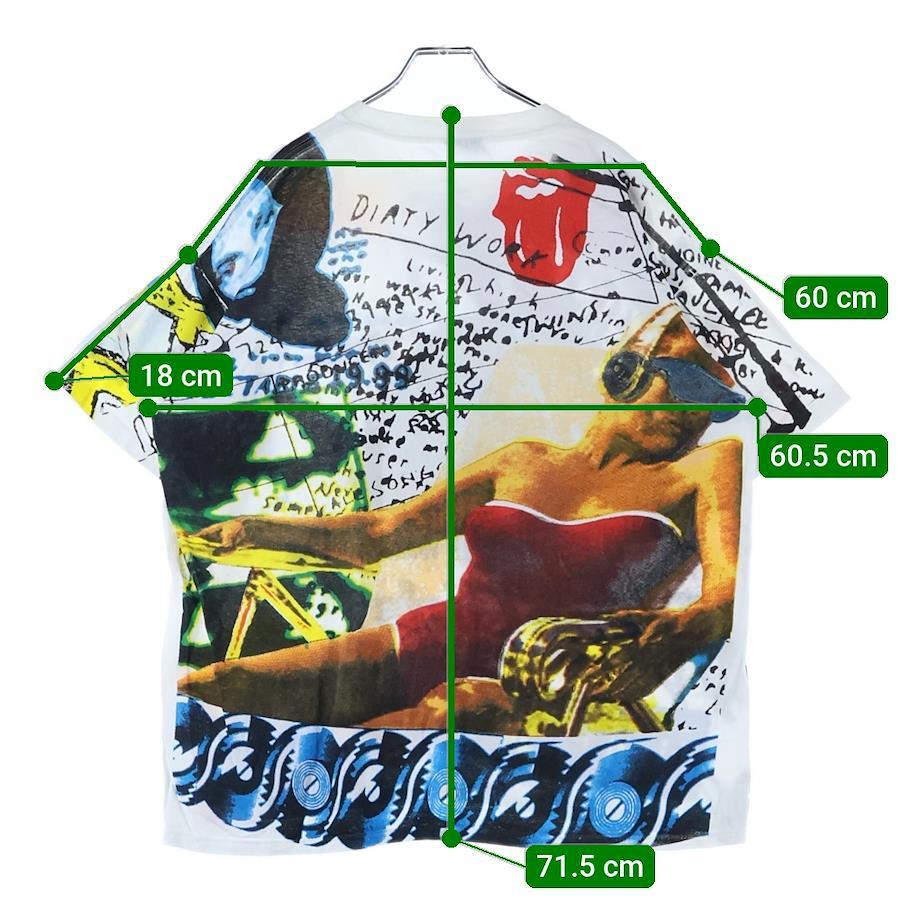 ■商品情報[商品番号]2925I230006[ブランド]VINTAGE(ヴィンテージ)[モデル]90s THE ROLLING STONES OVP STICKY FINGERS SOME GIRLS DIRTY WORK ローリング ストーンズ スティッキー フィンガーズ フルプリント 1994 半袖Tシャツ[サイズ]着丈:71.5センチ 身幅:60.5センチ 肩幅:60センチ 袖丈:18センチ表記サイズ:XL■状態・コンディション[状態ランク]ランク B使用感有り前身頃/後身頃中部にシミ有り[備考]ビンテージ商品のためダメージがございます。