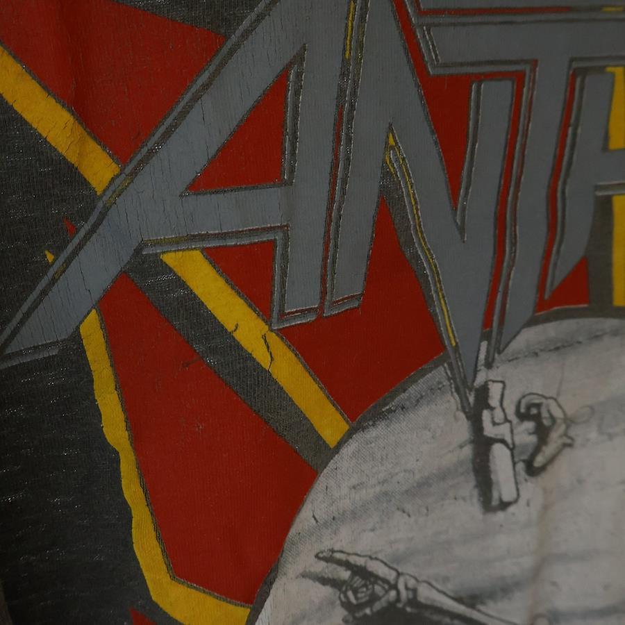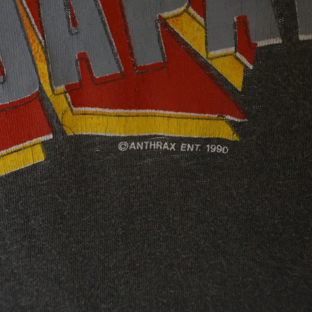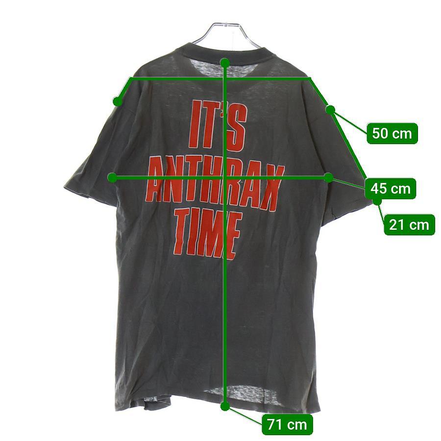 [モデル]90S VINTAGE ANTHRAX LIVE IN JAPAN 1990 ヴィンテージ アンスラックス 日本ライブ 両面プリント クルーネック半袖Tシャツ カットソー チャコールグレー