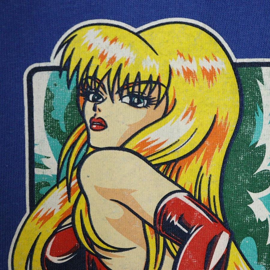 [モデル]90S VINTAGE HOOK UPS ヴィンテージ フック アップス フロントプリント クルーネック半袖Tシャツ カットソー ブルー