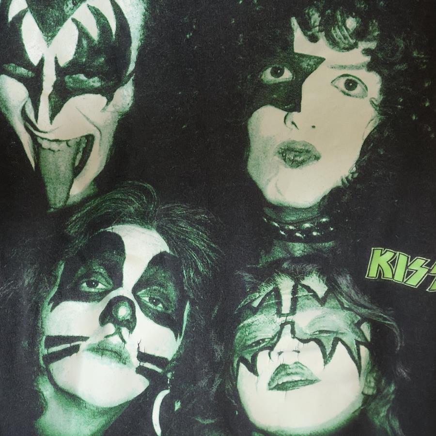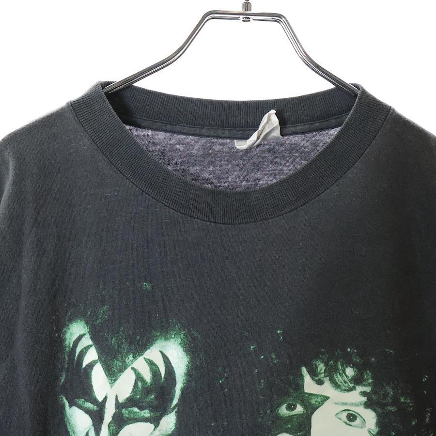 [モデル]90S VINTAGE KISS 1996 ヴィンテージ キス グローインザダーク フロント蓄光フォトプリント クルーネック半袖Tシャツ カットソー チャコールグレー/グリーン