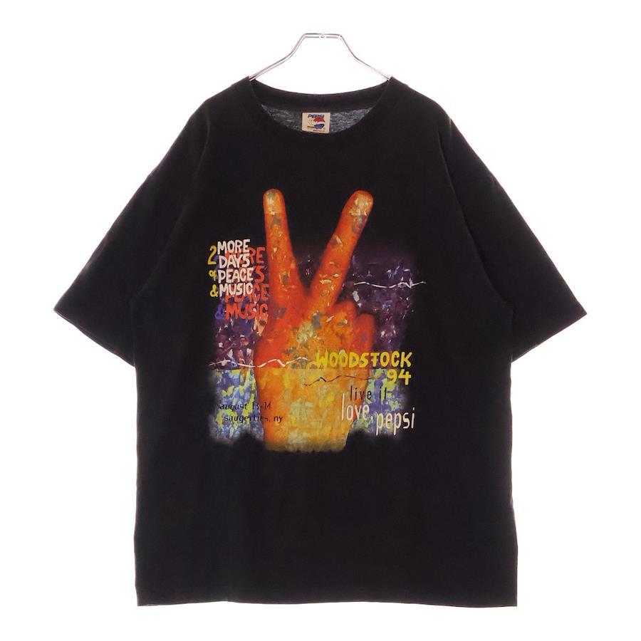 [モデル]90S VINTAGE WOODSTOCK 94 FESTIVAL TEE ヴィンテージ ウッドストック 1994フェスティバル ペプシタグ 両面プリントTシャツ 半袖クルーネック ブラック