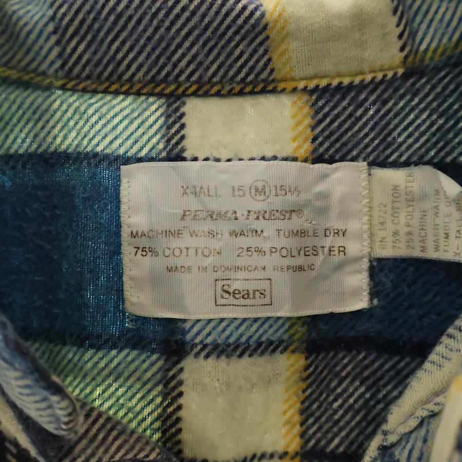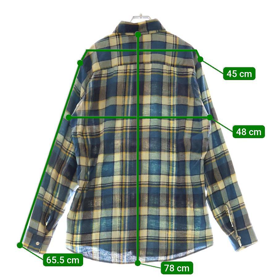 ■商品情報[商品番号]1325F060008[ブランド]VINTAGE(ヴィンテージ)[モデル]Sears Regular collar CHECK SHIRT シアーズ レギュラーカラー チェック 長袖シャツ ブルー[サイズ]着丈:78センチ 身幅:48センチ 肩幅:45センチ 袖丈:65.5センチ表記サイズ:M■状態・コンディション[状態ランク]ランク B使用感有り全体的に毛羽立ち/色褪せ有り襟タグに薄れ有り裾口裏地にほつれ有り[備考]ビンテージ商品のためダメージがございます。