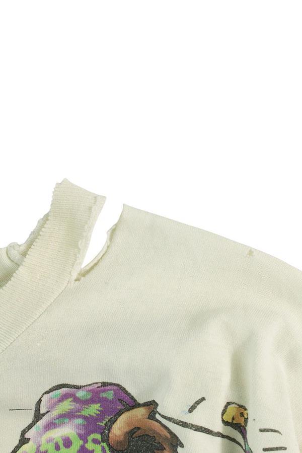 ランク:C (ダメージ、汚れが目立つ商品)状態備考:首元、袖口に大きな破れがあります全体的に黄ばみ、毛羽立ちがありますブランド:ヴィンテージサイズ:L色:ホワイト×パープル×グリーン実寸:肩幅52.5cm 身幅54cm 着丈68.5cm 袖丈60.5cm重さ:-素材:コットン付属品:なしその他特徴:-管理番号:10518-241027-0309