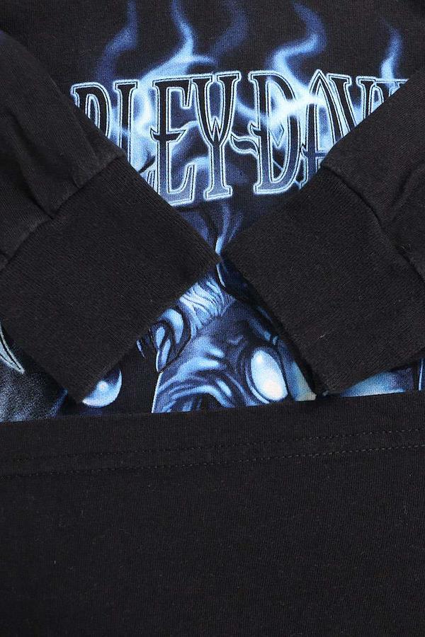ランク:C (ダメージ、汚れが目立つ商品)状態備考:全体的に若干の擦れ、毛羽立ちがあります品質タグの表記が薄れていますブランド:ヴィンテージサイズ:XL色:ブラック×ブルー実寸:肩幅58cm 身幅60.5cm 着丈77cm 袖丈66cm重さ:-素材:コットン付属品:なしその他特徴:-管理番号:10518-251005-0206