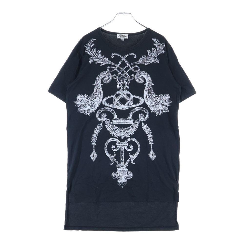 [モデル]ヴェルサイユ バロック オーブロゴ プリント 変形 ロング 半袖Tシャツ カットソー ブラック VW-LP-85284