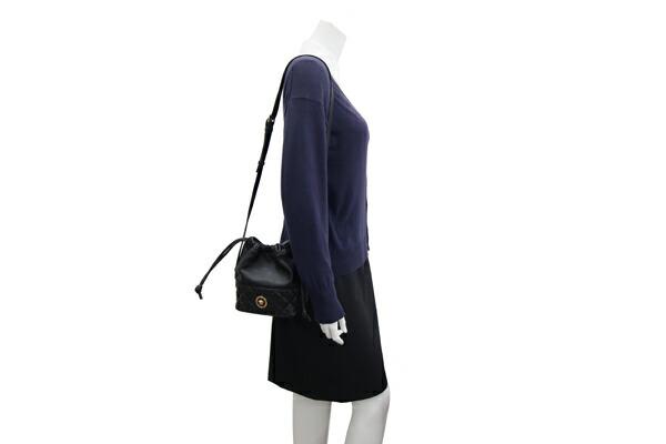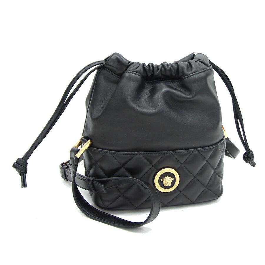 ヴェルサーチショルダーバッグDBFI173Sブラックレザー中古巾着バッグメデューサ黒斜めがけレディース女性キルティングVERSACE