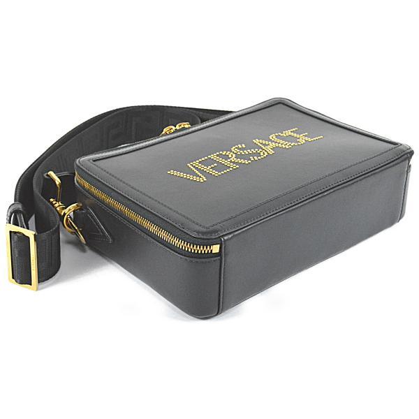 Versace, excellent condition, leather studded logo 2-way clutch bag, men's shoulder bag, black.