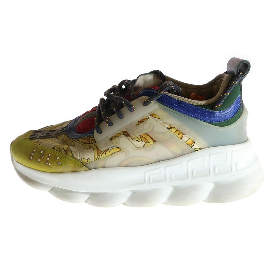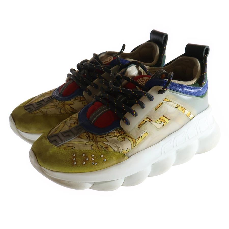 ■商品情報[商品番号]9025I120015[ブランド]VERSACE(ヴェルサーチ)[モデル]CHAIN REACTION MULTI-COLOR RUBBER SUEDE チェーン リアクション ラバー スウェード ローカットスニーカー マルチカラー[サイズ]アウトソール:32センチ ワイズ:11.3センチ表記サイズ:41■状態・コンディション[状態ランク]ランク B使用感有り両足アウトソール/ミッドソール/インソール/甲全体に汚れ有り[備考]-