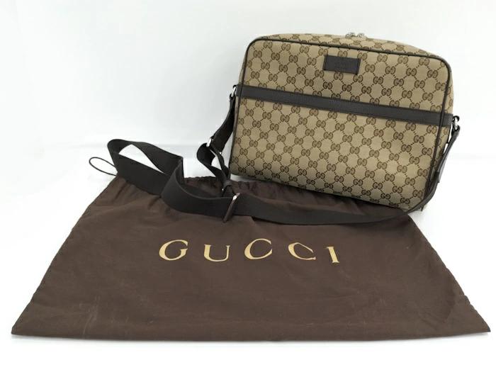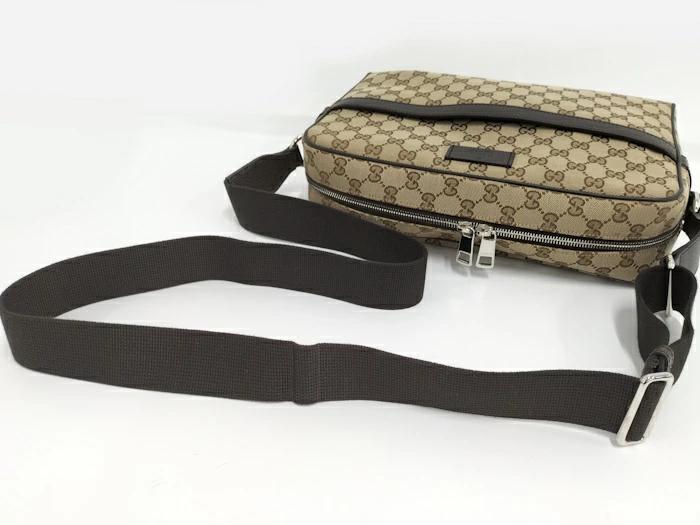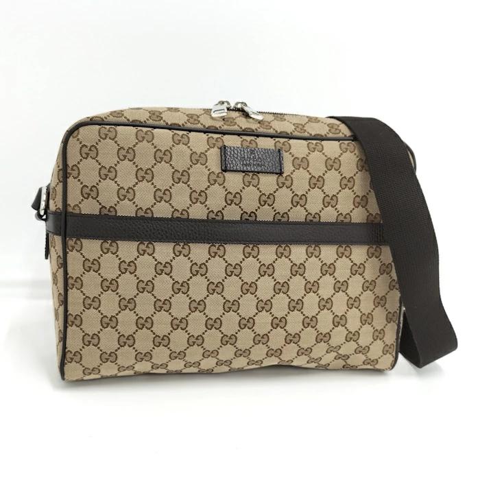 [Used] GUCCI Shoulder Bag GG Canvas Leather Brown Beige 449173