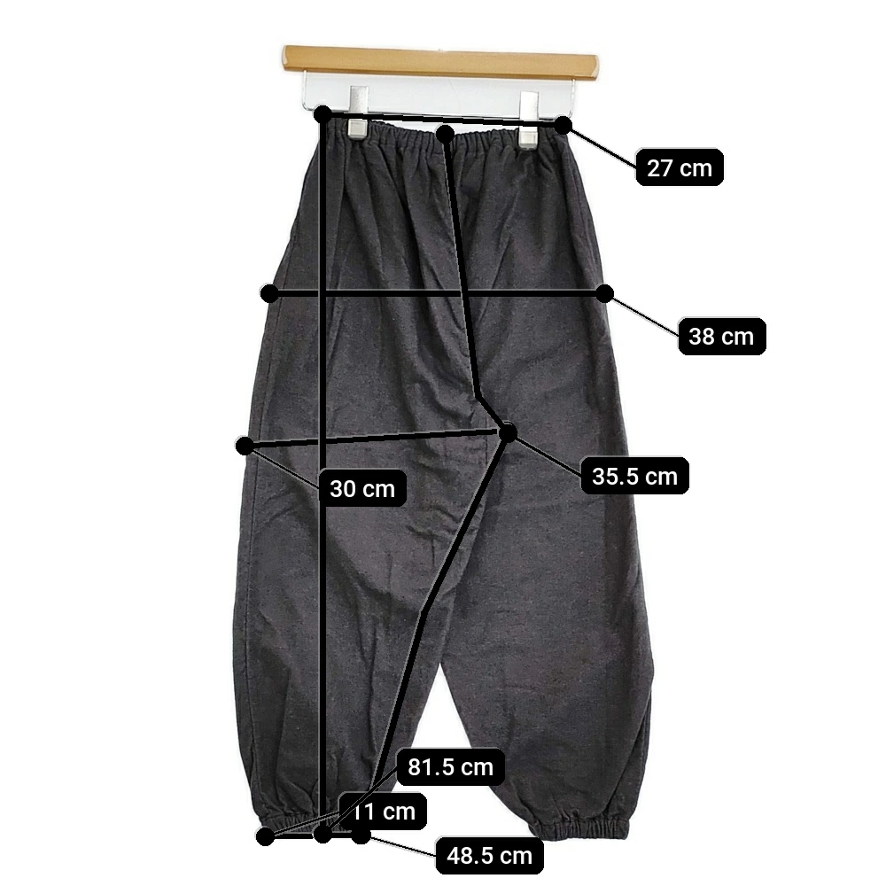 | 実寸サイズ | 総丈:約81.5cm ウエスト:約27cm ウエスト最長:約53cm 股上:約35.5cm 股下:約48.5cm ヒップ:約38cm ワタリ幅:約30cm 裾幅:約11cm ※採寸画像がある商品はハンガーに吊るした状態での計測のため、平置きでの採寸とは差が生じる場合がございます。平置きでの実寸サイズをご希望の場合は、ご購入前に必ずご質問ください。 ※記載以外のサイズが合わないことを理由とした返品はできませんので、 記載部分以外で実寸サイズの気になる箇所があれば必ず購入前にご質問ください。 |