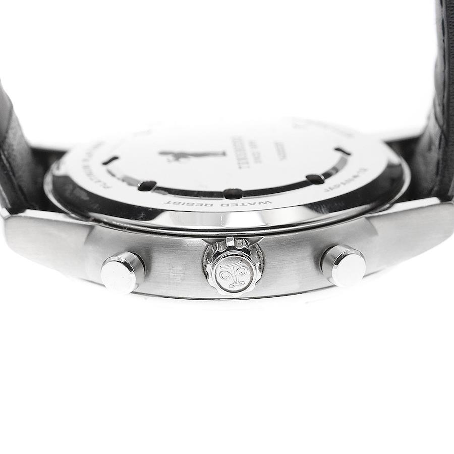 ■商品情報ブランド: 天賞堂/TENSHODOモデル名: グランドコンプリケーション対象: メンズ素材: SS × 革文字盤色: シルバームーブメント:クォーツRef.No: 6771-T008721シリアル:142000***機能・特徴:トリプルカレンダー,クロノグラフ,ムーンフェイズ付属品:尾錠(バックル)ケースサイズ(w):約 40mmベルトサイズ:約 18.5cm※ベルトサイズとは、ケース部分も含めた総腕回りのサイズになります。ラグ幅: 20mmOH歴: 弊社では実施しておりません。