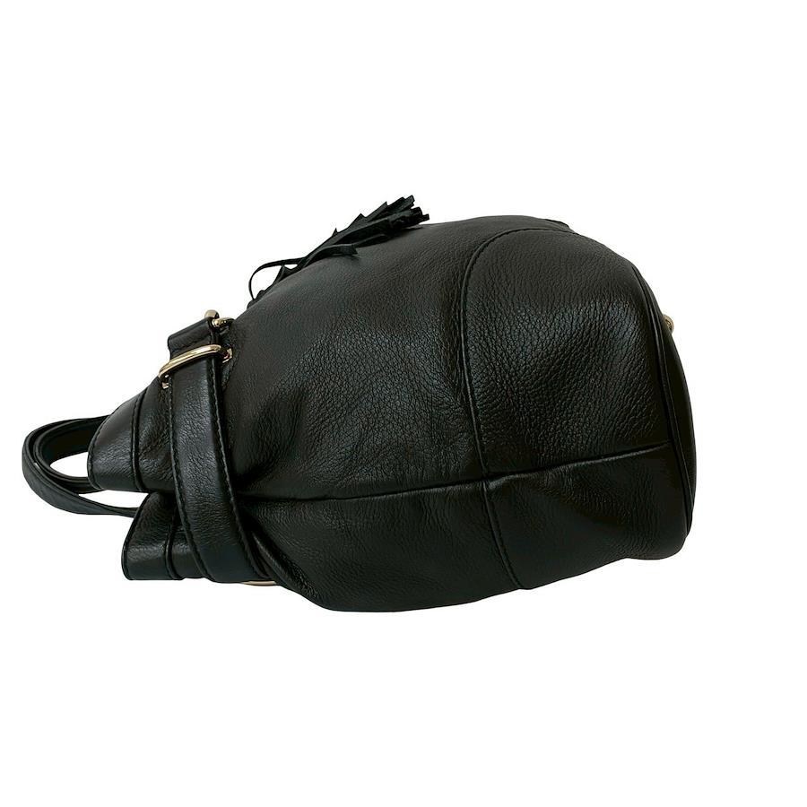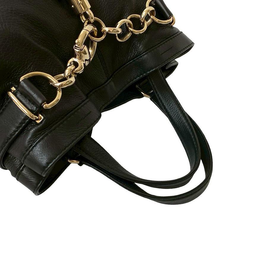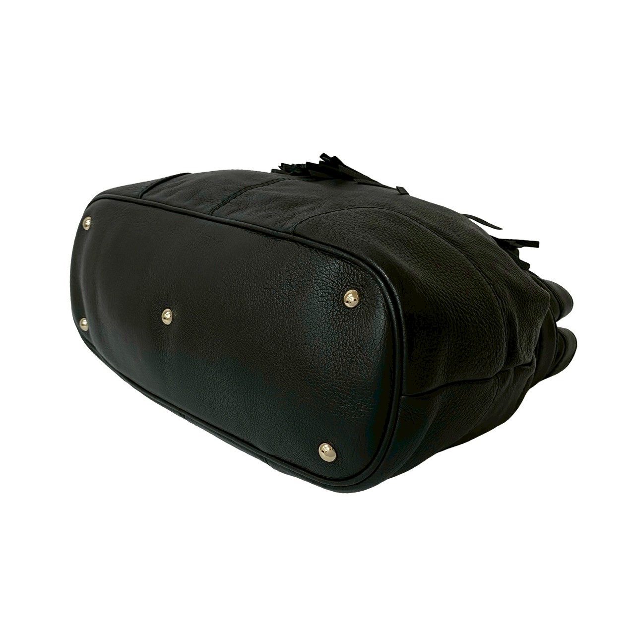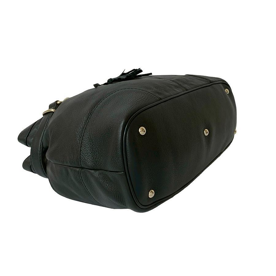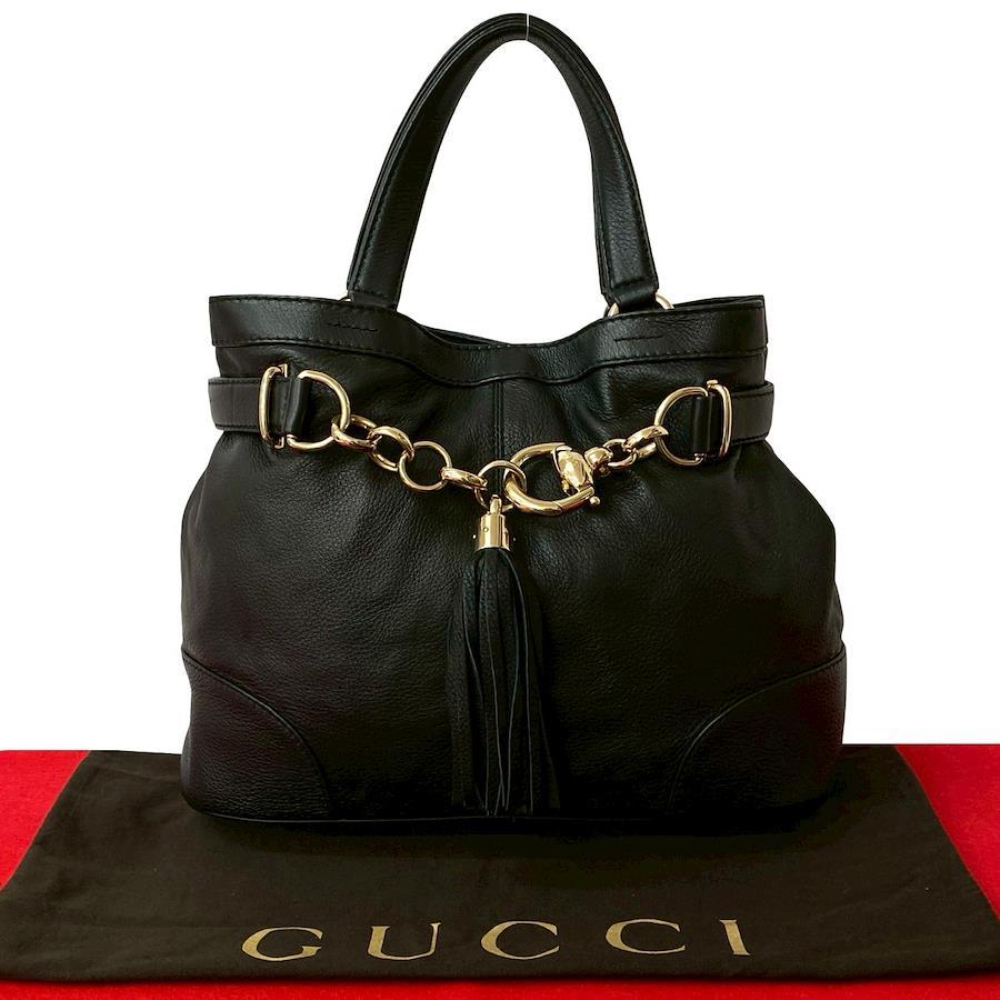 Rare GUCCI handbag/tote bag in black with chain, logo, hardware, genuine leather, tassel, and fringe. 35045. Comes with a pouch.
